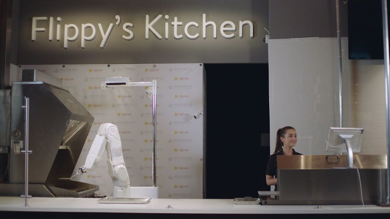 В одном из ресторанов Caliburger в Пасадене бургеры теперь делает робот. Машина по имени Флиппи собирает данные от тепловых и 3D-датчиков, различных камер на борту. Информацию о заказах она получает по сети. Сейчас роботу доверены все подготовительные работы, но он зовёт на помощь человека, когда настаёт время начинок. Пока устройство не может приготовить бургер полностью и нуждается в контроле, однако создатели отмечают, что в ближайшее время автоматы смогут взять на себя основные повторяющиеся задачи.
