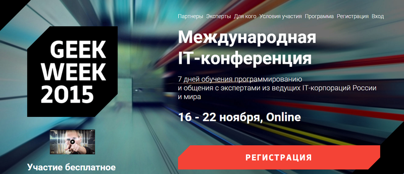 Меньше чем через месяц, 16 ноября 2015 года, состоится GeekWeek-2015 - масштабное событие, совмещающее формат конференции и обучающего интенсива по программированию.