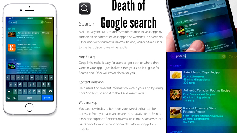 Фактически, Google запустил индексацию мобильных приложений два года назад, когда ему стало окончательно понятно, что мир Mobile Apps теснит уже «архаичный» web по всем фронтам. Это время было потрачено на оттачивание множества технологий, например, анализа «deep links» (ссылки на страницы внутри приложения). В итоге «app» индекс для iOS и Android ничем не отличается от «web» индекса. В Google утверждают, что уже проиндексированы тысячи приложений и имеется около 100 млрд ссылок внутри них.